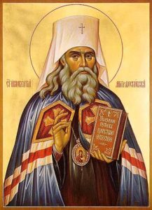 Святитель Иннокентий, митрополит Московский (в миру Иван Евсеевич Попов-Вениаминов), родился 26 августа 1797 г. в селе Ангинском Иркутской епархии в семье пономаря. Мальчик рано усвоил грамоту и с 7 лет уже читал Апостол в церкви. В 1806 г. его отдали в Иркутскую семинарию. Здесь, как лучшему воспитаннику, юноше дали фамилию Вениаминов в честь почившего Иркутского архиепископа Вениамина († 8 июля 1814 г.). 13 мая 1817 г. он был рукоположен в диакона к Благовещенской церкви Иркутска, а 18 мая 1821 г. – во священника.